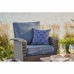 Style Selections 2-Piece Hadrian Tile Blue Geometric Deep Seat Patio Chair Cushion