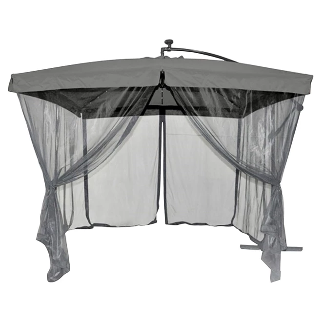 Create a backyard retreat where you can relax this summer with this solar-light cantilever umbrella. The patio umbrella features a square 10′ dark grey canopy that is water repellent and offers instant shade from the sun. The integrated solar lights conveniently brighten up your retreat, so you can enjoy your space when the sun goes down. Mosquitos and bugs won’t drive you indoors thanks to the included netting that provides protection from bothersome insects. The patio umbrella has a crank handle for easy adjustable positioning, and the steel pole and base ensure a durable and stable design.