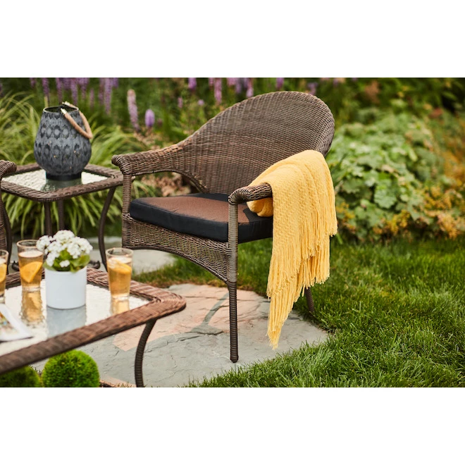 Revive your outdoor living space in comfort and style with the Spruce Hills seat pad from Style Selections. Crafted with durable and beautiful polyester fabric, this cushion will resist the elements while remaining bright and beautiful for years to come. Filled with 100% polyester fiber for long-lasting comfort and support. It has an universal design that fits most patio chairs. It features a reversible design that allows cushions to be flipped on either side for use on patio furniture.