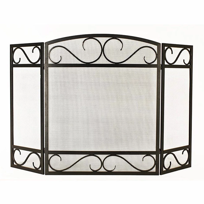 This Style Selections fireplace screen features a 3-panel hinged frame with a mesh screen and top and bottom scroll design. Made of powder-coated steel, the screen is durable and elegant and adjusts to fit to most fireplaces.