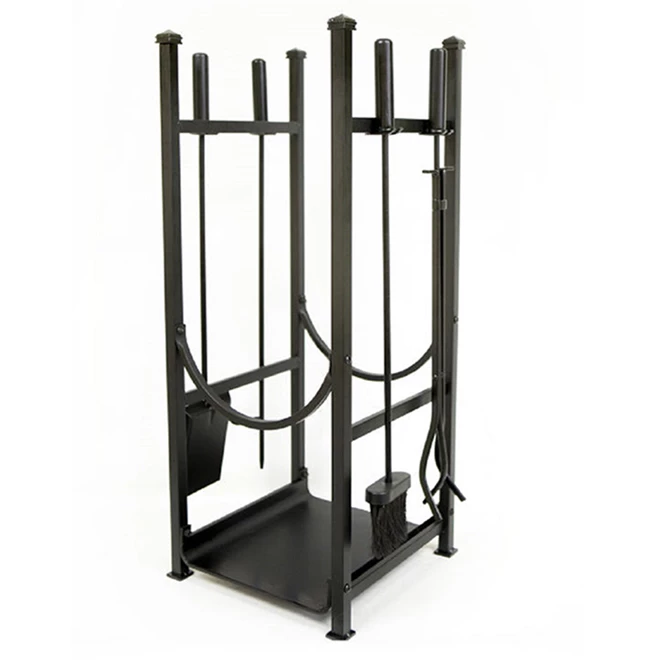 Keep logs and tools neatly organized with this Style Selections fireplace tool set and log-bin. Fabricated of heavy-duty steel with a black powder-coated finish, this kit offers all the tools you need to safely tend to your fire. The bin will hold and store up to 40 lb of firewood conveniently at hand when needed. The easy to assemble set includes a heat-resistant brush, tongs, shovel, poker and log rack and measures 32.67 x 14.76 x 13 inches wide.