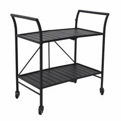 Bring refreshments to your guests on the patio with this bar cart from Style Selections. Made of black steel, the cart is foldable for easy storage. 18.9 in x 33.27 in. For a perfect outdoor decor, coordinate it with other items of the Pelham Bay collection.