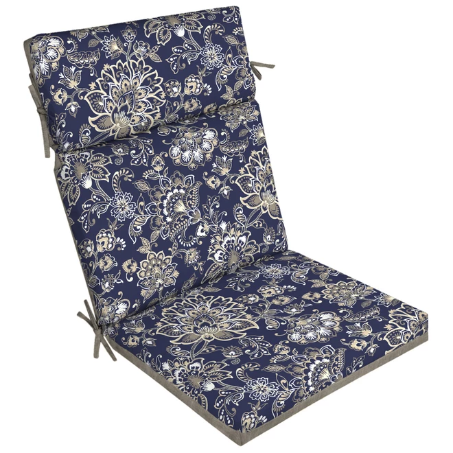 Style Selections Reversible Patio Chair Cushion – Polyester – Blue and Grey Flower/Solid Pattern