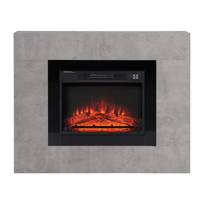 Enjoy the warmth and flame effect of this Style Selections Rossa electric fireplace. Featuring an embossed laminate finish with a cement ash colour, it offers 3 flame brightness options and comes with a remote control for more convenience. In addition, it has a 0.5 to 6-hour timer and on-screen temperature settings from 62°F to 82°F. Firebox dimensions: H 17.1-in x W 23-in x D 5-in.